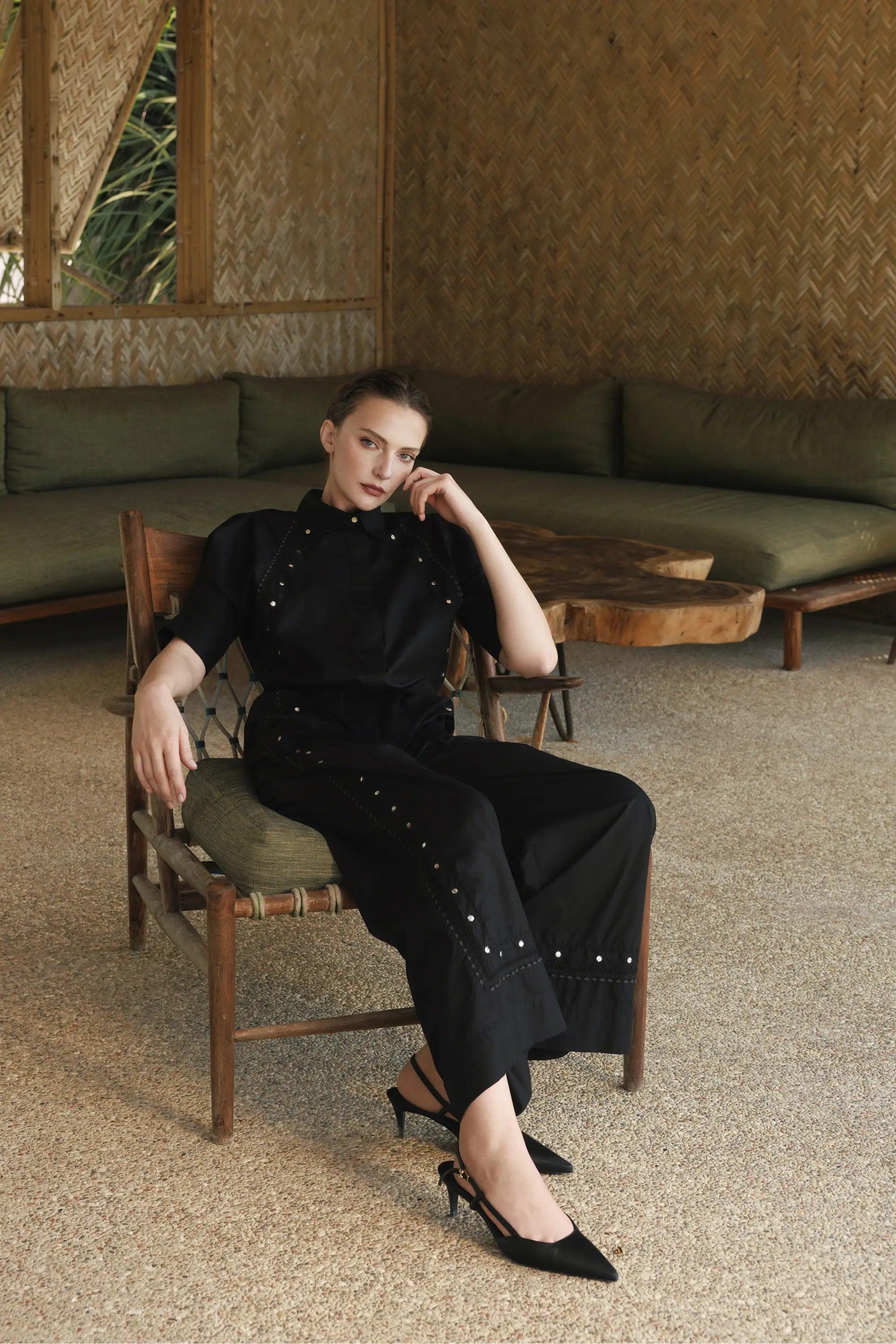 This season I revisit some VdeVinster staples — Tie & Dye, Ikat and Tartan — in an easy-going and light-hearted way. Drawing inspiration from my youth in the 80s, the collection incorporates sun-kissed colors and bold patterns alongside unexpected elements like metallic paillettes, cowry shells, and contrasting appliqués.